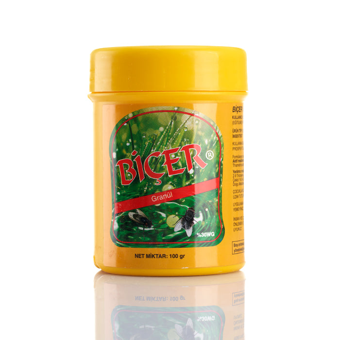 Kullanım Şekli: Biçer, ergin karasinek mücadelesinde kullanılabilen ani ve uzun süre etkili (45 gün) bir insektisittir. Uygulamanın etkinliğini artırmak için, karasineklerin ürünü yiyebilecekleri yüzeylere uygulama yapmak gerekmektedir. Bu nedenle uygulama için, karasineklerin dinlenme alanları(güneşli duvarlar, pencere, kapı, çerçeve vb.) seçilmelidir.
